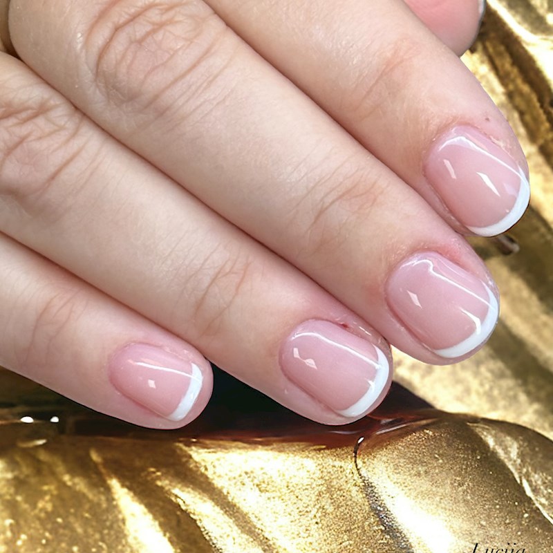 Fotbad, klipp og stell av negler +fransk shellac (med hvit tipp)